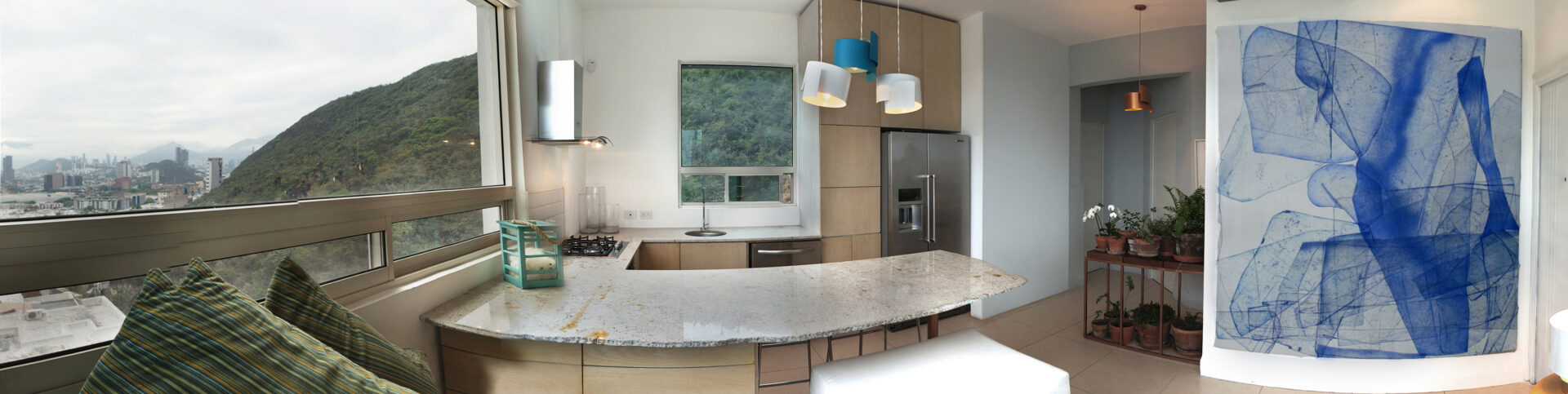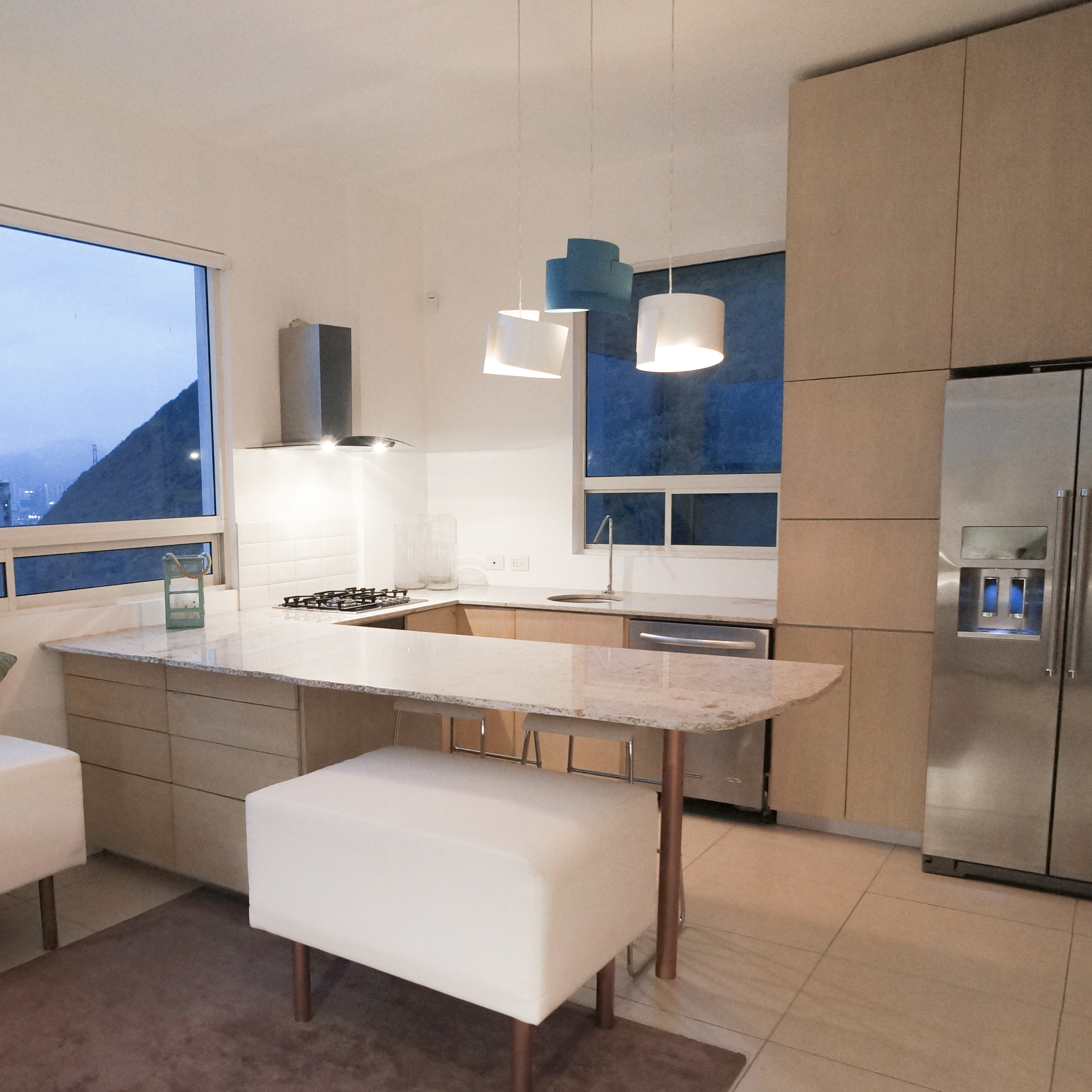 Nestled against the striking backdrop of Monterrey’s mountains and urban skyline, this fully remodeled unit reimagines small-space living with artistry and precision.