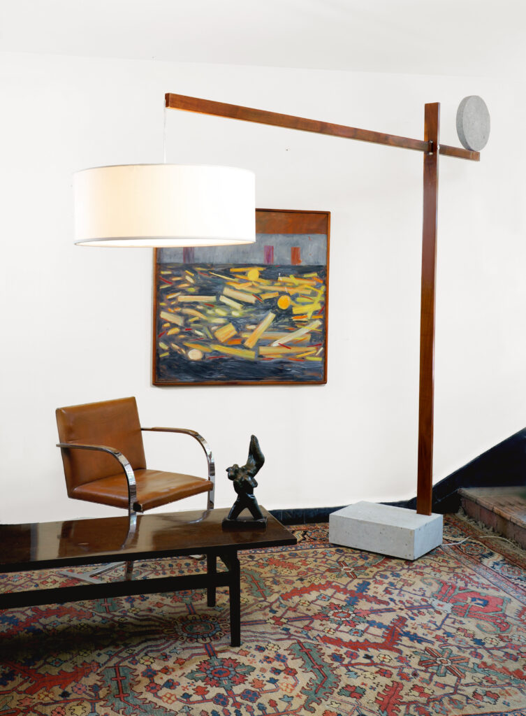 With its sculptural silhouette, La Justice commands attention while seamlessly blending into various interiors. The juxtaposition of natural wood and raw concrete lends it a timeless aesthetic, equally at home in modernist settings or classic spaces. Whether standing in a living room, an art-filled gallery, or a contemplative study, it introduces an atmosphere of quiet authority and poetic restraint.